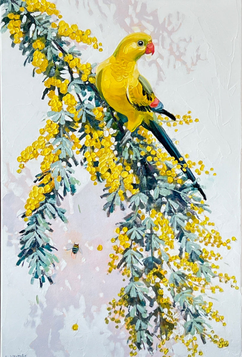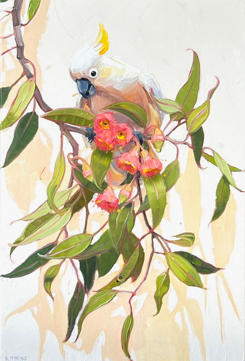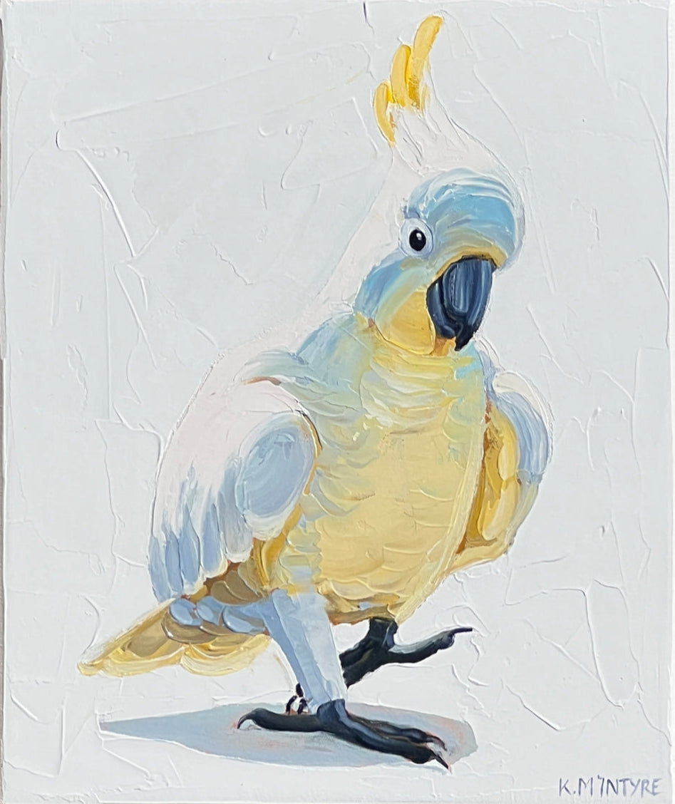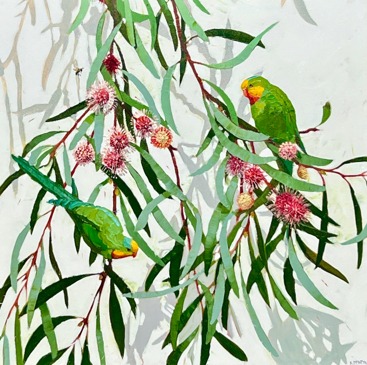 Kirsty McIntyre is a Melbourne based artist working mainly with palette knife and oil paint on canvas, with Australian themed still life subjects, and the backyard birds that visit her compositions. Described in a review by Peter Haynes in the Canberra Times in 2022; “McIntyre’s use of pattern is beautifully controlled. The artists use of an intense light suffuses the overall composition allowing each element to be clearly delineated and hold pictorial autonomy. Light also imbues a sense of McIntyre's capturing a moment in time. The beautifully random compositions filled with freely dispersed floral and other objects have a sense of delicate movement, of the transitoriness of nature and of the innate beauty in that transitoriness.”