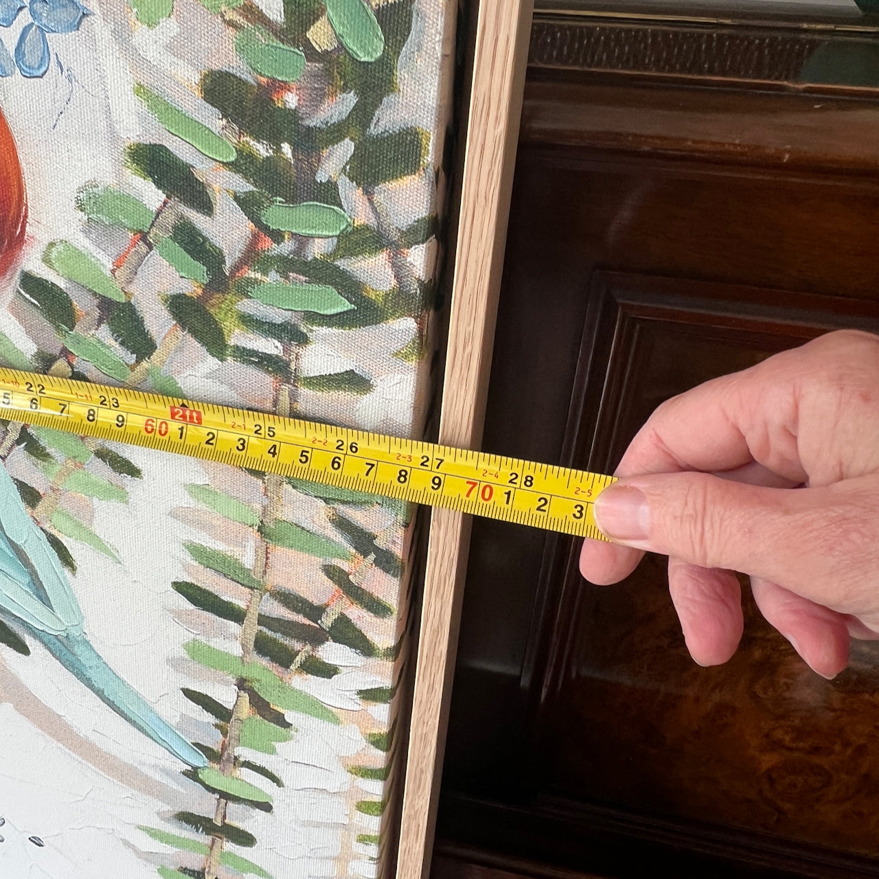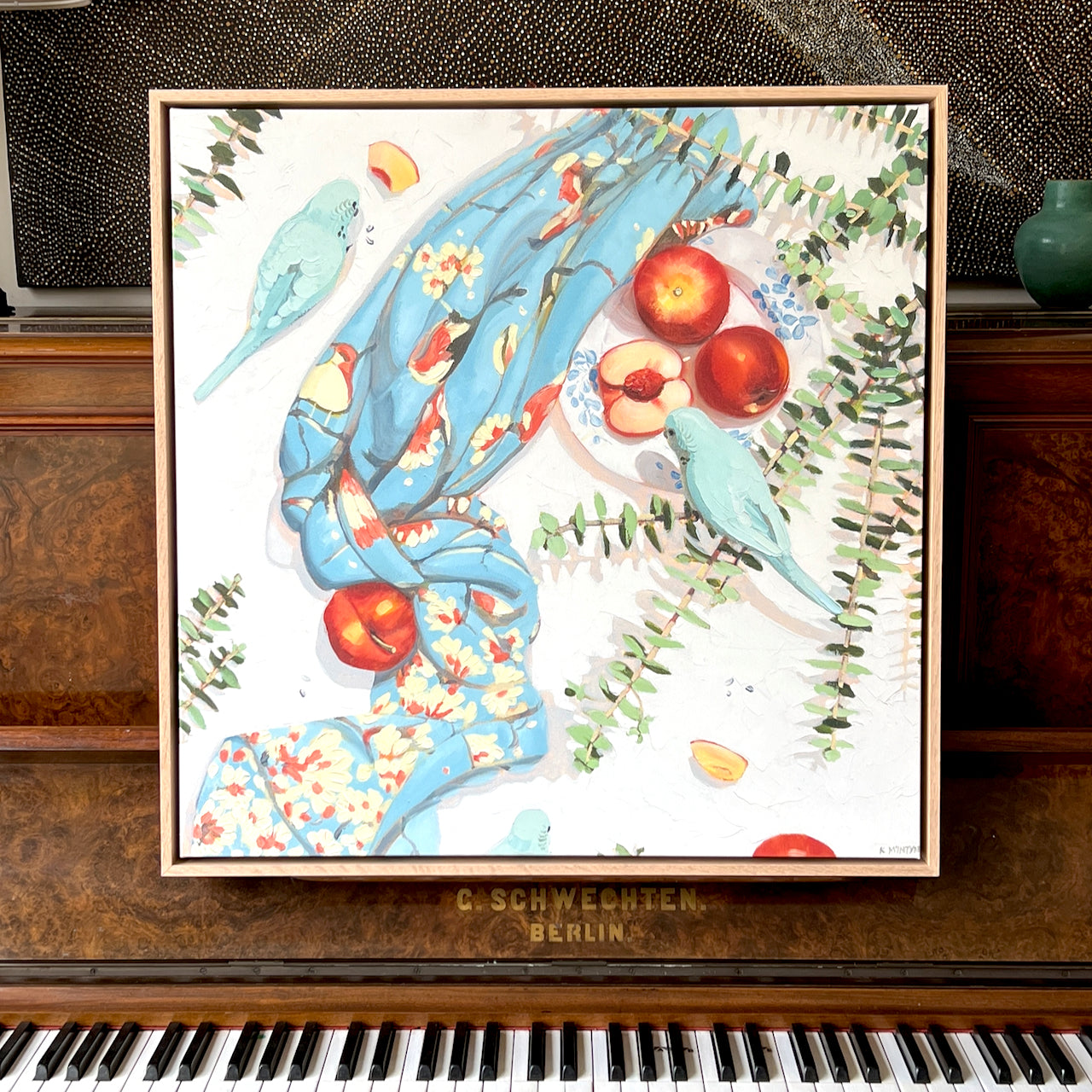 70x70cm reproduction of a favourite original artwork on canvas, framed in an oak float frame. This is a one of a kind, offered with free postage within Australia.