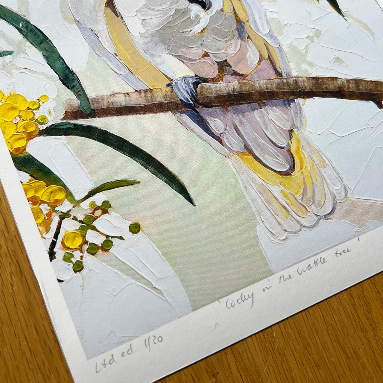 Cocky in the wattle tree (ltd ed A3 print) Unframed.