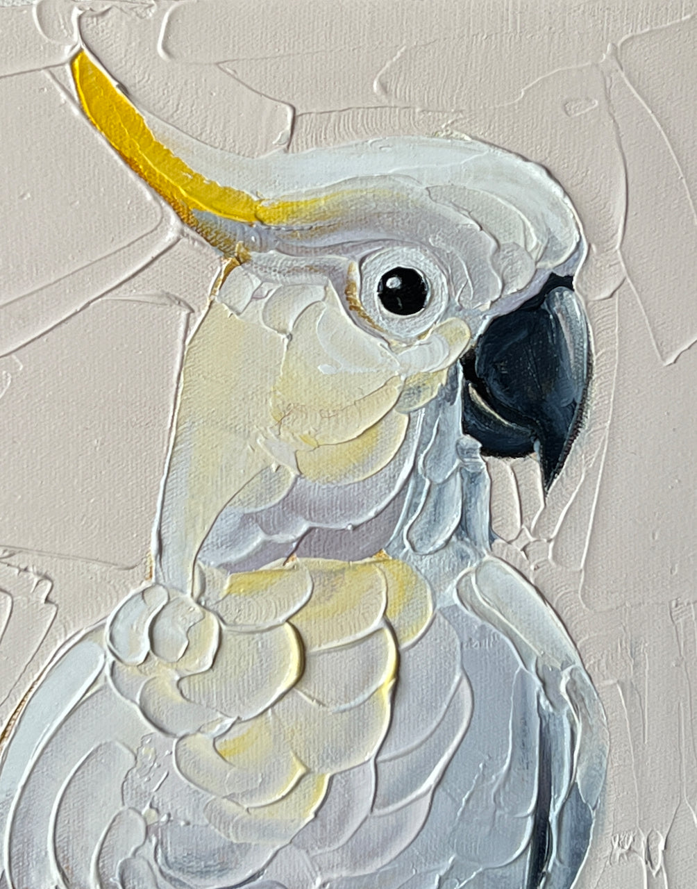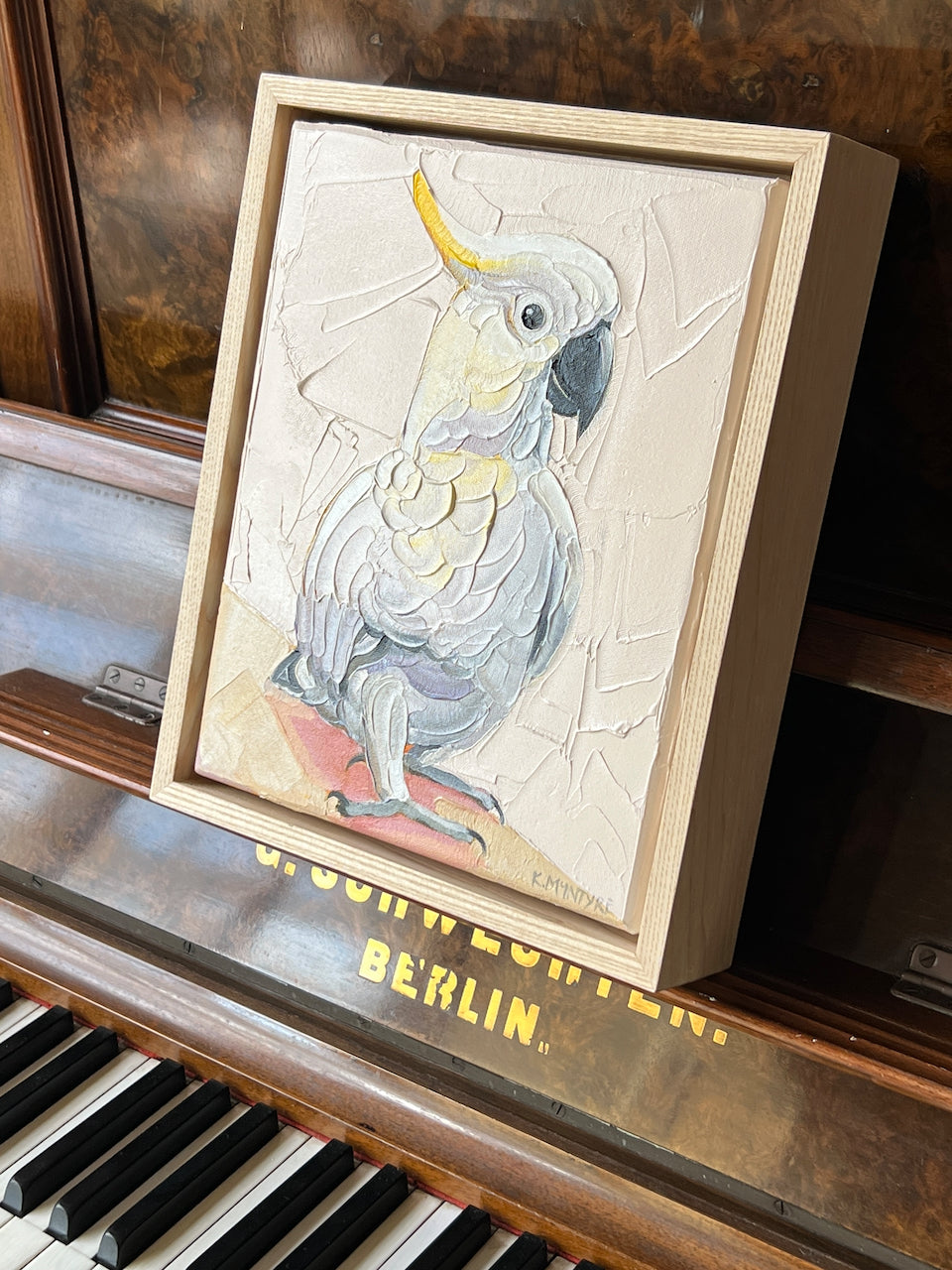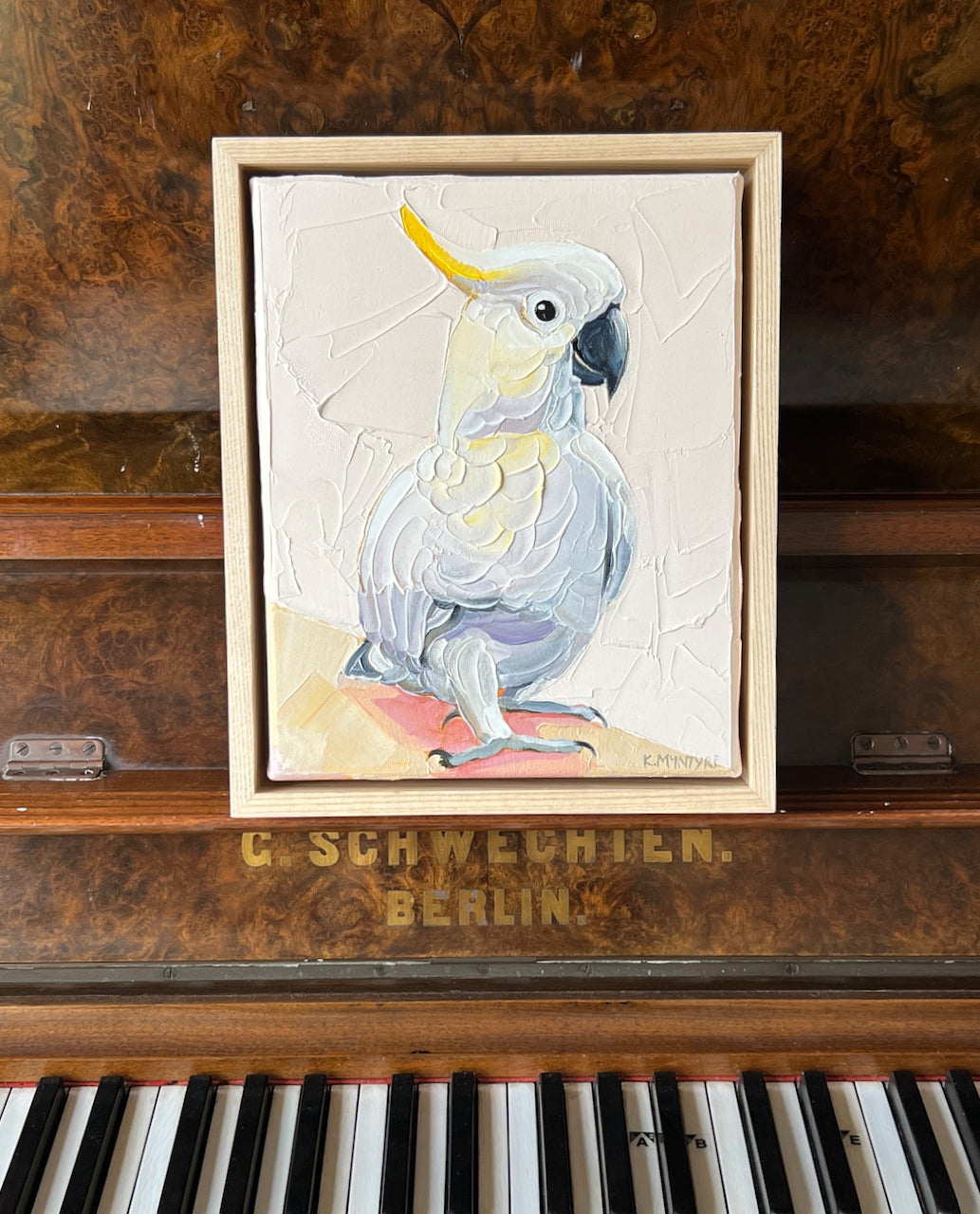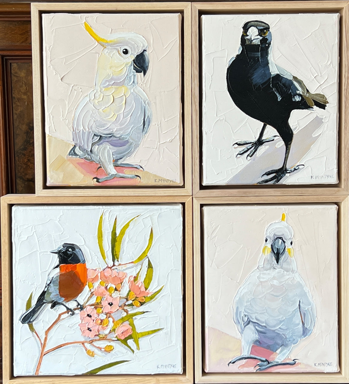 23x28cm including the floating ash frame, painted with brush and palette knife, oil paint on canvas to provide a pleasing, textured surface.