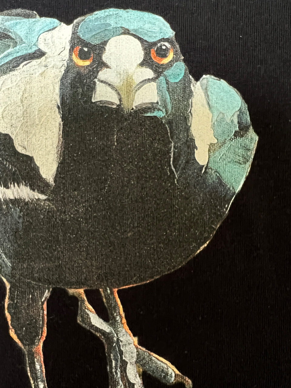 Whimsical magpie themed tee designed by Kirsty McIntyre, printed to order and shipped within Australia. Shaped with a narrower shoulder to hip ratio to better fit the female body shape and shorter than the unisex tees. Perfect gift for bird lovers- a nice, medium weight fabric with a smooth finish and a fun design. This design is also available in a unisex/mens tee and a kids/teens t-shirt (which will also fit smaller adults) and also with "Magnificent" text in a separate listing